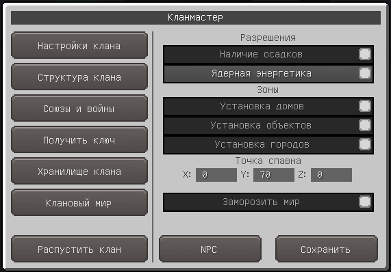 Управление клановым миром