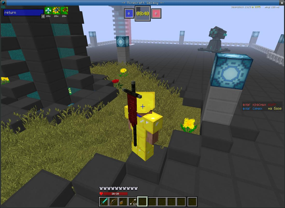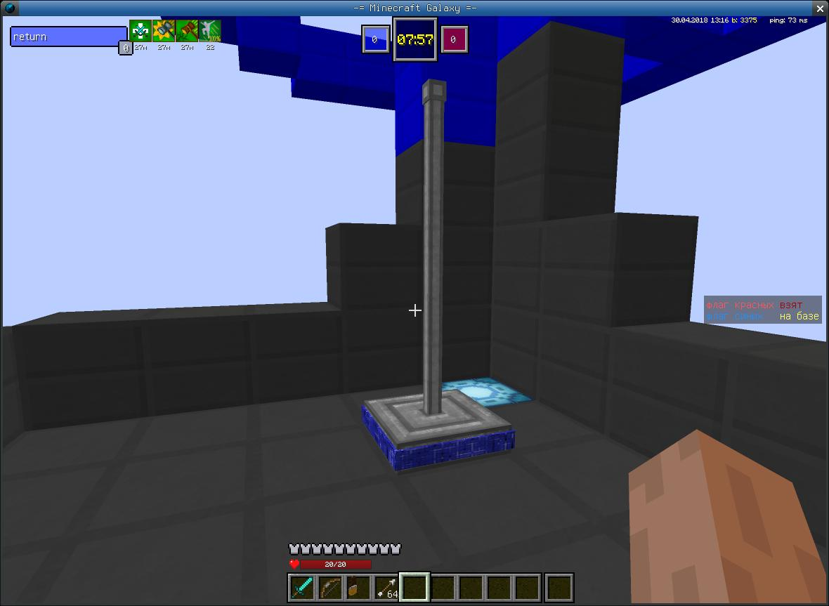 Когда игрок берет флаг, он появляется у него в инвентаре и не может быть им выброшен, снят или передан. При этом у игрока пропадает возможность ускоряться.