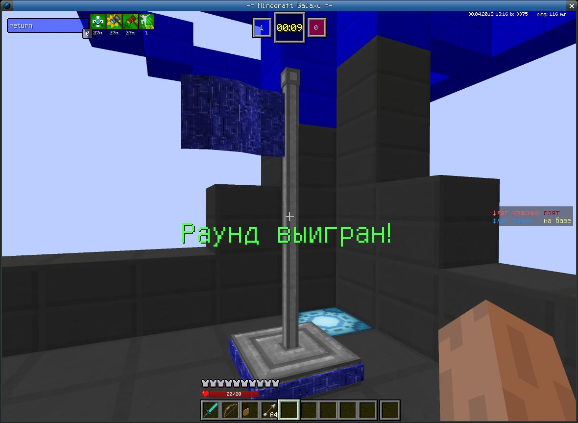 В раунде побеждает та команда, которая первая донесет флаг соперника до своей точки, в игре побеждает команда, которая выиграет наибольшее число раундов.