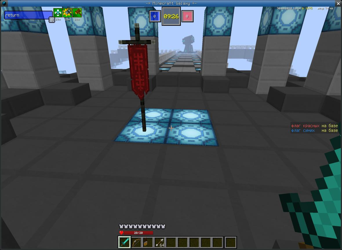 У каждой команды есть один свой флаг, который стоит на их базе или недалеко от нее. Любой игрок противоположной команды может взять этот флаг и побежать с ним (аналогично клановым знаменам). Его задача донести флаг до точки возле своей базы. Если игрока убили, то флаг выпадает на землю и устанавливается. Установленный флаг можно либо опять подобрать, либо уничтожить, после чего он появляется на базе своей команды.