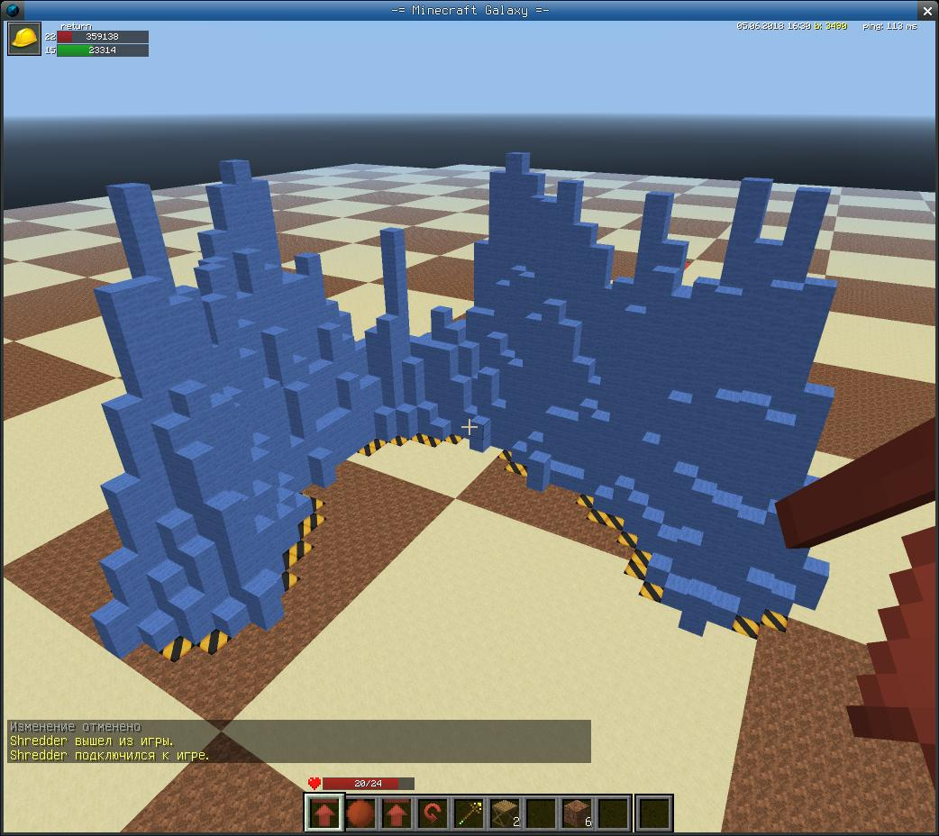 Если блок не выбран, то инструмент будет выдавливать блоками того же типа, который лежит в подложке, как на скриншоте выше. Если же блок указать, то выдавливаться будет именно он вне зависимости ни от чего: