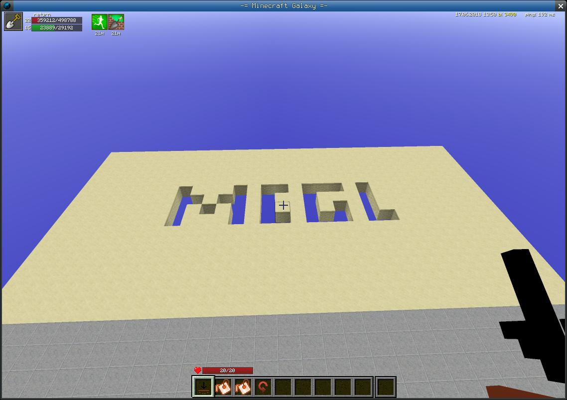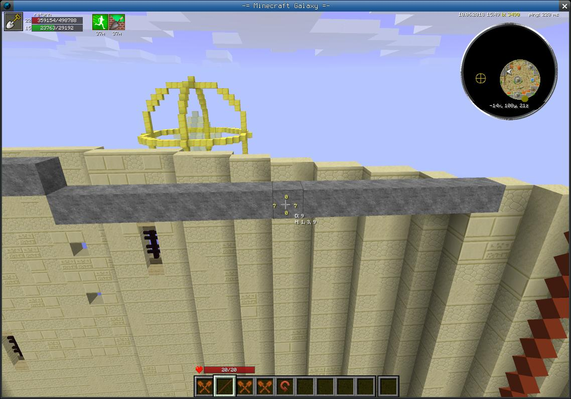 2) удар по любому блоку снимает его так, как если бы прочность у него была равна 0. С учетом увеличенной дальности взаимодействия это дает возможность быстро и просто высекать из массива блоков нужные формы, стоя на месте: