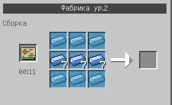В интерфейсе фабрики положить их нельзя, в нем можно лишь проверить правильность раскладки ресурсов в соответствии с рецептом крафта, а так же узнать причину, по которой не происходит процесс изготовления изделия (таких ошибок может быть 7). Между собой фабрика и контейнеры соединяются стальными трубами.