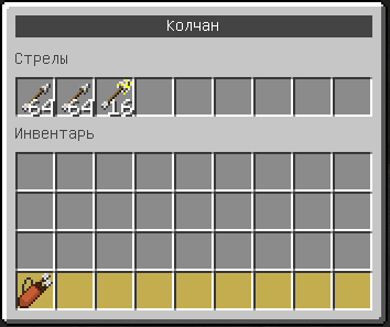 После закрытия интерфейса в подсказке к колчану отобразится суммарное количество стрел каждого вида: