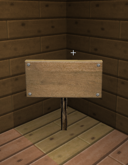 Крепится на стены или ставится на пол, причём последнее под множеством углов. Отображает на себе текст, 4 строки по 14 символов, который можно задать при установке или в режиме редактирования, вызываемом кликом рукой без предметов. Для хранения текста в предмете существует блокнот.