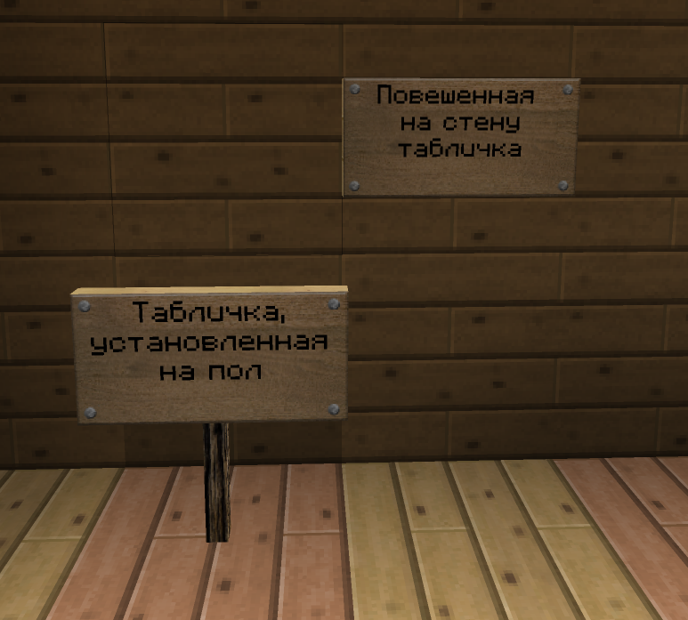 При том табличка, установленная на пол, будет направлена в сторону игрока: