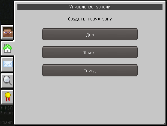 Если игрок находится на свободной территории, в которой доступна установка зоны, во вкладке будут доступны кнопки для установки одного из типов зон.