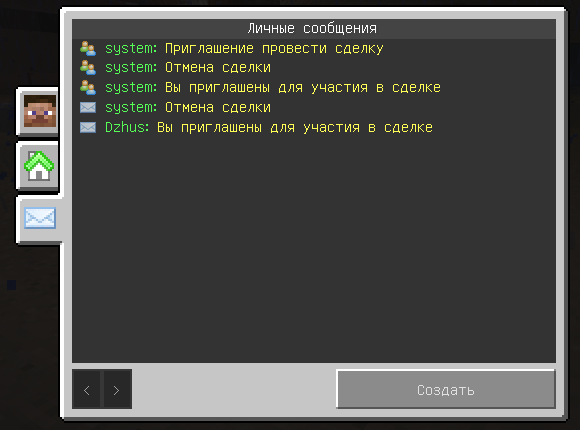 Предусмотрена возможность просматривать и отправлять личные сообщения вне форума - вкладка с изображением конверта в инвентаре. Список отображается в формате имя отправителя: тема. Непрочитанные сообщения выделяются желтым, как и на форуме.