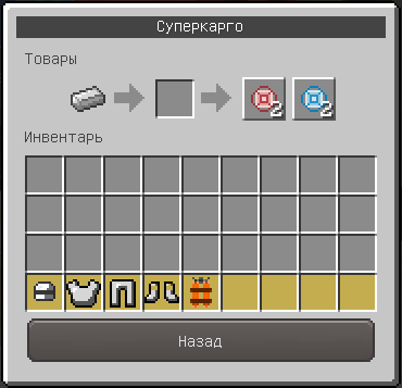 Во вкладке "Товары" за небольшое пожертвование в виде одного слитка железа можно пополнить запасы красных маяков телепорта, способных быстро доставить колониста обратно на базу (или к установленной кровати, если задана точка возрождения). Либо приобрести синие маяки, чтобы сразу отправиться навстречу приключениям.