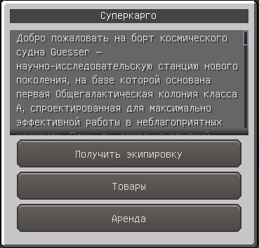 Доверенное лицо капитана на базе колонистов на планете Enigma. Встречает новоприбывших и распоряжается ресурсами в корабельных трюмах: выдаёт защитные скафандры, обменивает слитки железа на маяки телепорта, предоставляет в аренду сейфы и каюты.