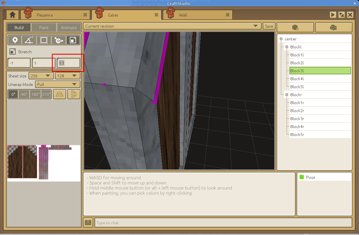 2) голова модели (если таковая у нее есть) должна иметь имя head - именно этот блок считается головой и управляется программно в игре, при этом все блоки, которые перемещаются вместе с головой, должны быть прикреплены к ней в дереве блоков