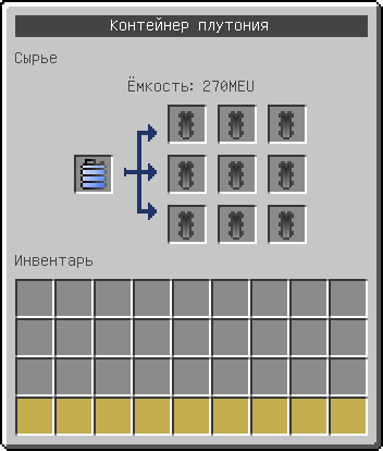 Для работы блока его необходимо заправить плутониевыми стержнями. Максимальное количество стержней, которое можно загрузить в контейнер плутония - 9, суммарно они будут производить 270 MEU. Контейнер с плутониевыми стрежнями требует охлаждение в виде канистры для воды, при отсутствии которого может произойти взрыв, по своей силе аналогичный взрыву ядерного TNT.