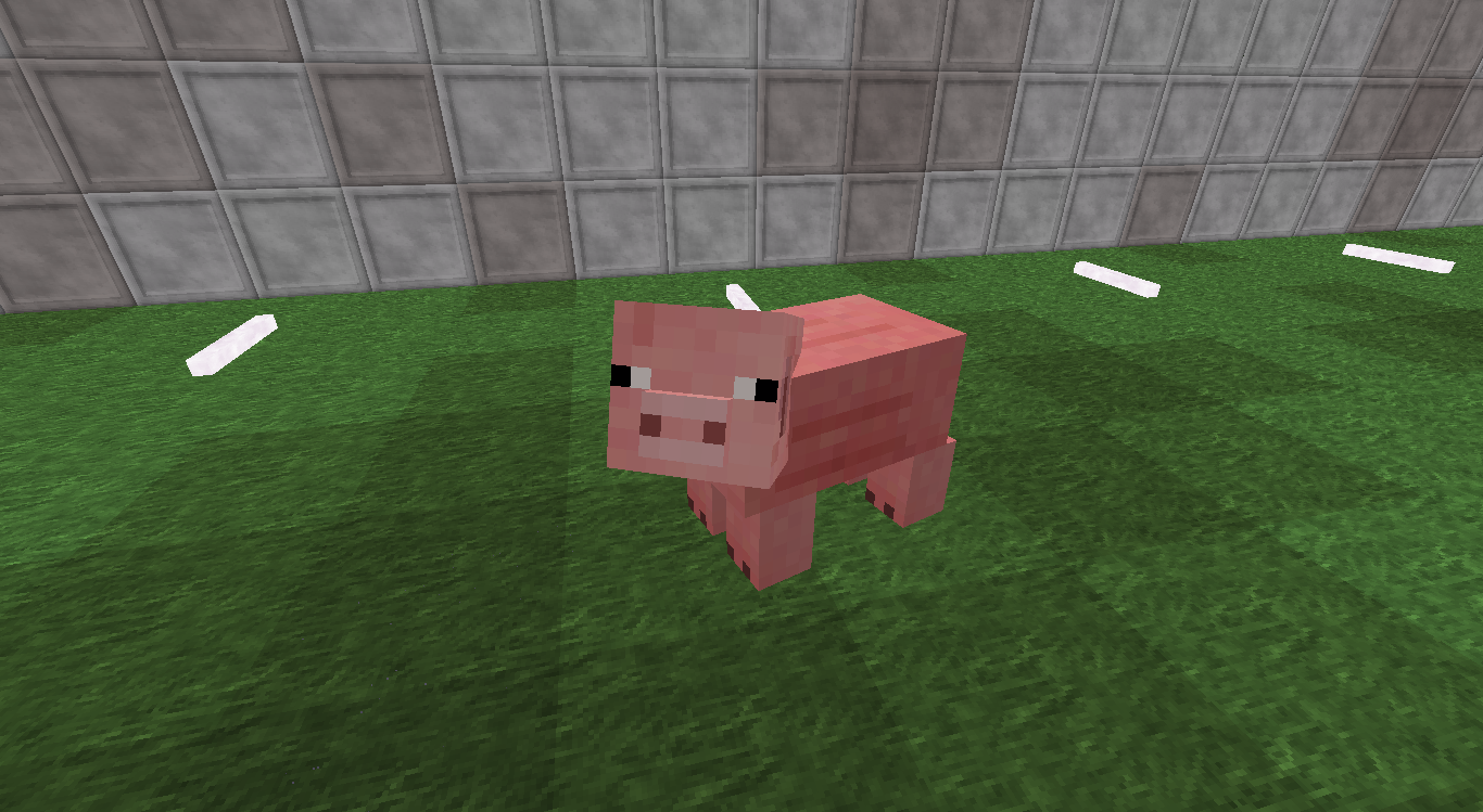 Мирное животное. Популярный источник свинины и ДНК, которые добывается из свиней в больших количествах из-за существования спаунеров. Свинью можно оседлать, надев на нее седло, однако управлять ей невозможно. Если рядом со свиньей ударит молния, животное превратится в свинозомби.