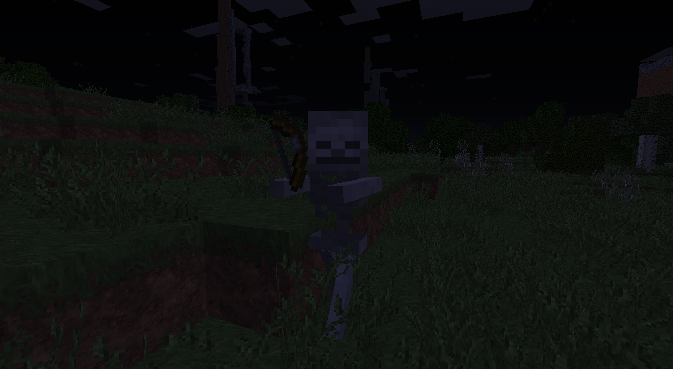 Злобный костлявый мертвец, обитающий как на поверхности в ночное время суток, так и в темных уголках пещер. Скелет постоянно гремит своими останками, благодаря чему его приближение можно услышать издалека. Вооружен мощным луком, поэтому старается держаться от жертвы на расстоянии, раня и калеча ее острыми стрелами. Достаточно редко можно встретить скелета верхом на пауке. Как и зомби, скелет горит на солнце.
